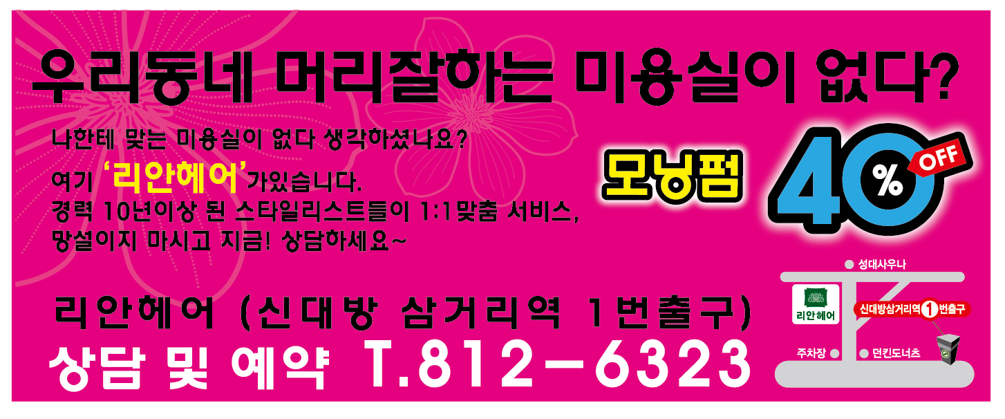 미용실.리안헤어.스타일리스트.모닝펌광고 : 100BW 애드빈스*마을버스광고.시내버스광고.버스쉘터*정류장광고.버스음성*지하철음성광고.지하철역사광고.택시광고.택배차광고.전광판*빌보드광고.아파트광고.대형마트*편의점광고.바이럴광고.신문광고*