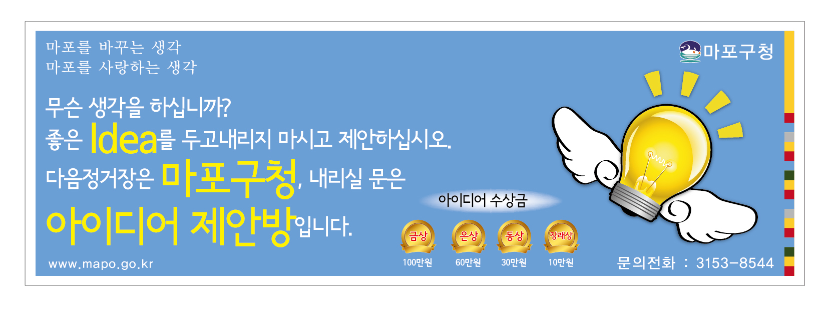 아이디어공모.마포구청광고 : 100BW 애드빈스*마을버스광고.시내버스광고.버스쉘터*정류장광고.버스음성*지하철음성광고.지하철역사광고.택시광고.택배차광고.전광판*빌보드광고.아파트광고.대형마트*편의점광고.바이럴광고.신문광고*