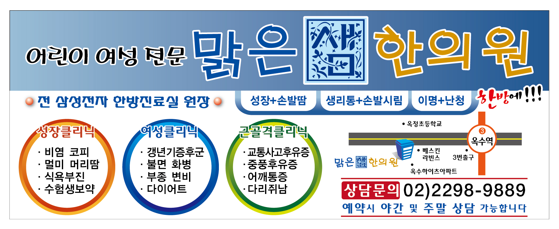 어린이.여성.한의원.한방진료.성장.손발땀.생리통.손발시림.이명.난청.비염.코피.멀미.머리땀.식욕부진.수헙생보약.갱년기.불면.화병.부종.변비.다이어트.근골격.교통사고후유증.어깨통증.다리쥐남*병원광고 : 100BW 애드빈스*마을버스광고.시내버스광고.버스쉘터*정류장광고.버스음성*지하철음성광고.지하철역사광고.택시광고.택배차광고.전광판*빌보드광고.아파트광고.대형마트*편의점광고.바이럴광고.신문광고*