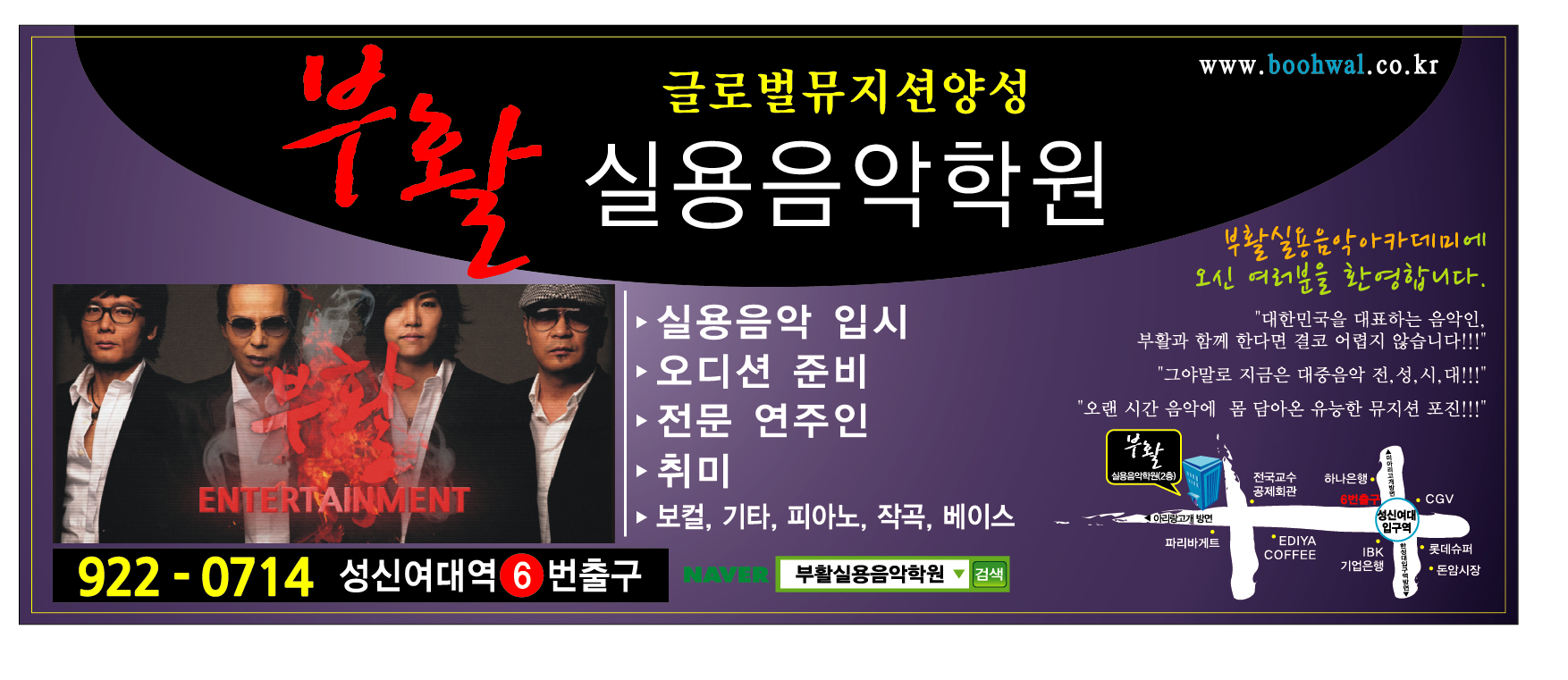 글로벌뮤지션.실용음악학원.오디션준비.연주인.취미음악.보컬.기타.피아노.작곡.베이스*학원광고 : 100BW 애드빈스*마을버스광고.시내버스광고.버스쉘터*정류장광고.버스음성*지하철음성광고.지하철역사광고.택시광고.택배차광고.전광판*빌보드광고.아파트광고.대형마트*편의점광고.바이럴광고.신문광고*